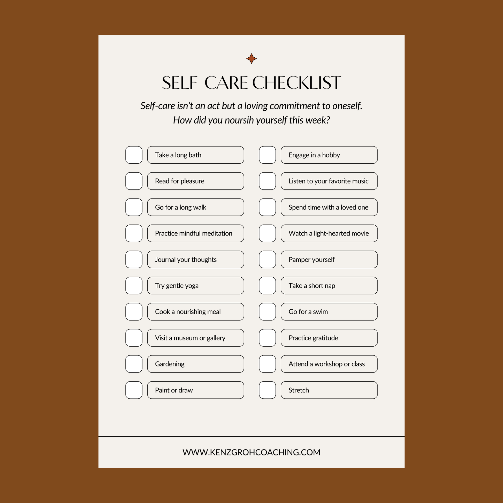 - A self-care checklist
